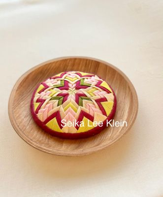 This is a one-layered jogakbo work that depicts a smooth circle. I invented the details of a curved technique my own way by combining traditional techniques.